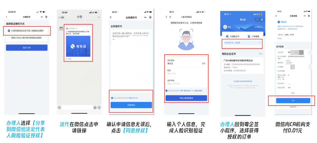 选择CA机构,完善企业信息,完成人脸识别验证。