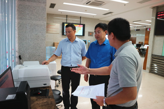 8月15日,省食品药品监督管理局正式上线食品药品许可电子证照系统,扫除无纸化审批发证的“最后一道关口”,真正实现“网上申报、网上受理、网上审评、网上审批、网上制证”,做到行政许可全程“零纸张”、申请人办事全程“零跑动”,足不出户即可申办许可证件。省局副局长严振带领行政许可处负责同志到受理大厅进行视察指导。